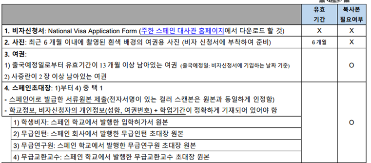 비자신청서는 주한 스페인 대사관 홈페이지에서 다운받아 잘 작성하기만 하면 되는 항목이다.